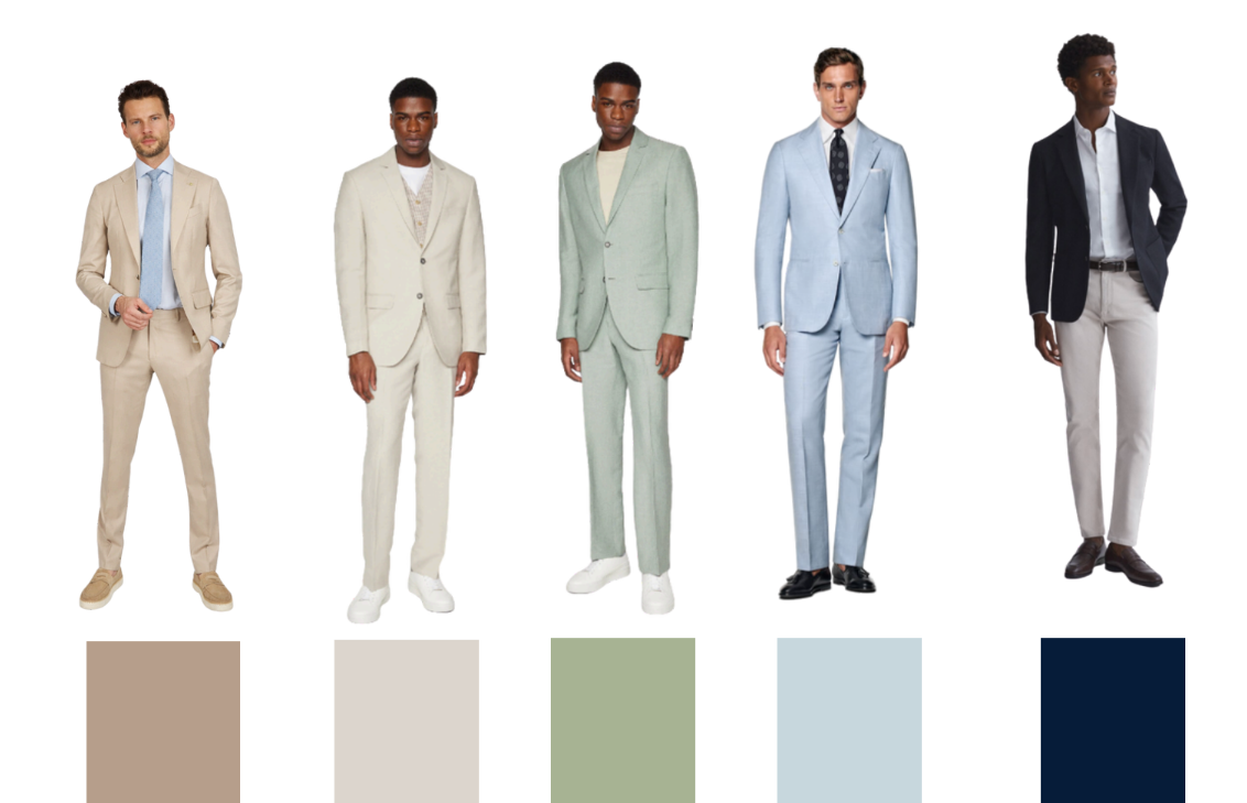 Onderstaand zie je de kleuren en type kleding wat past bij (Italian) Summer chique voor de heren.